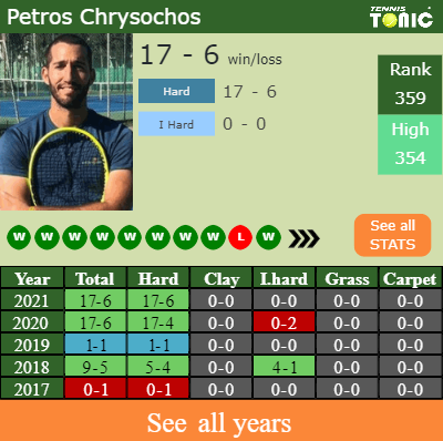 Chrysochos has an overall 17-6 win-loss record in 2021, 17-6 on hard (See FULL STATS).