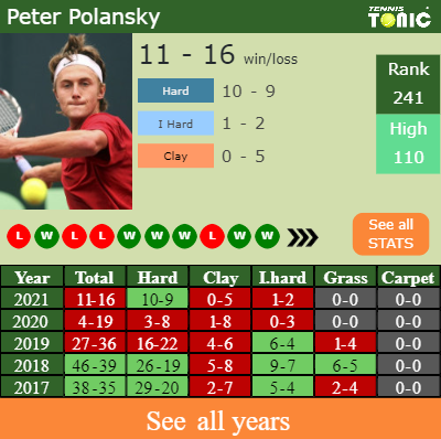 Polansky has a composed 11-16 win-loss record in 2021, 10-9 on hard (See FULL STATS).
