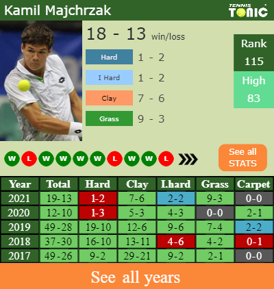 Majchrzak has an overall 19-13 win-loss record in 2021, 1-2 on hard (See FULL STATS).