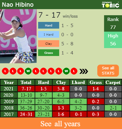 The Japanese has an aggregate 7-17 win-loss record in 2021, 1-5 on hard (See FULL STATS).