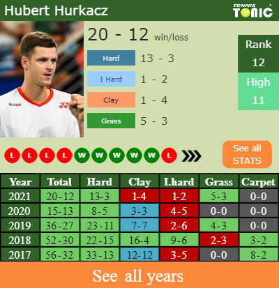 The Pole has an overall 20-12 win-loss record in 2021, 13-3 on hard (See FULL STATS).