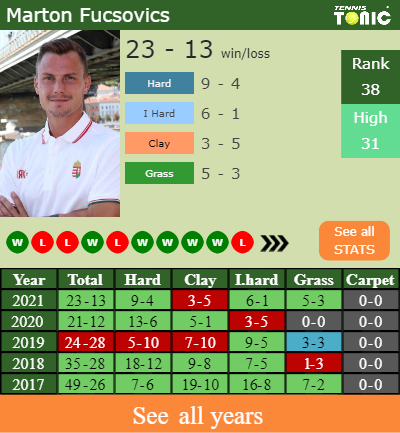 The Hungarian has a compiled 23-13 win-loss record in 2021, 9-4 on hard (See FULL STATS).
