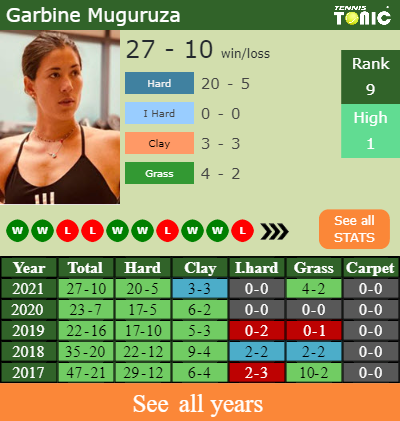 Muguruza has a composed 27-10 win-loss record in 2021, 20-5 on hard (See FULL STATS).