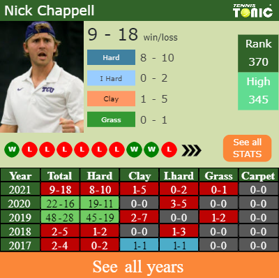 The American has a compiled 9-18 win-loss record in 2021, 8-10 on hard (See FULL STATS).