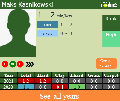 Kasnikowski has an aggregate 1-2 win-loss record in 2021, 0-0 on clay (See FULL STATS).