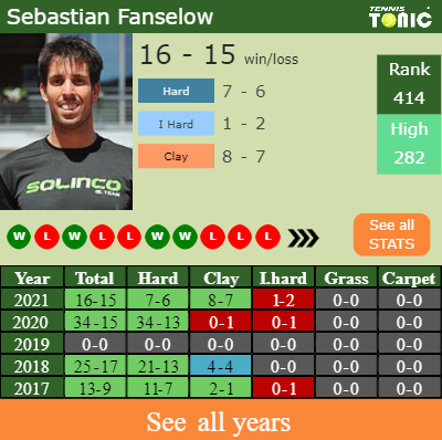 Sebastian has a compiled 16-15 win-loss record in 2021, 8-7 on clay (See FULL STATS).