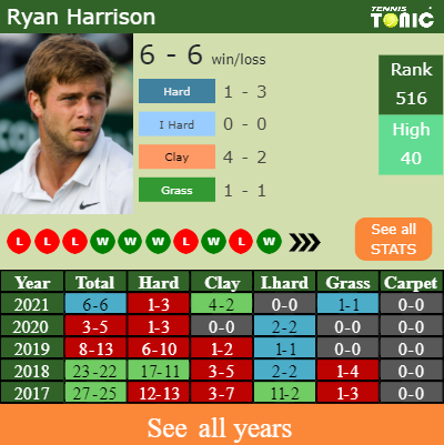 In terms of his career, Harrison has an overall 305-278 record. He has a positive 176-148 record on hard.