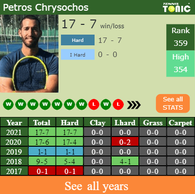 Chrysochos has an overall 17-7 win-loss record in 2021, 17-7 on hard (See FULL STATS).