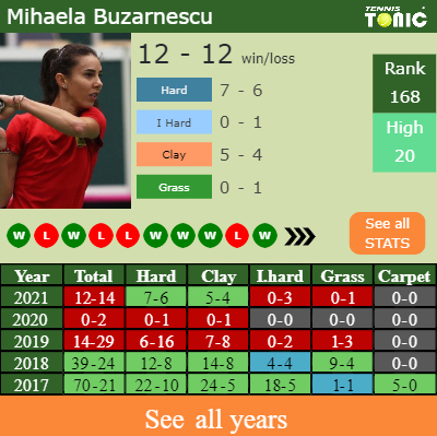 The Romanian has a compiled 12-14 win-loss record in 2021, 7-6 on hard (See FULL STATS).
