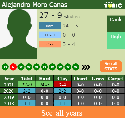 The Spaniard has an overall 27-9 win-loss record in 2021, 24-5 on hard (See FULL STATS).