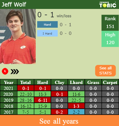 Jeff has an overall 0-1 win-loss record in 2021, 0-1 on hard (See FULL STATS).