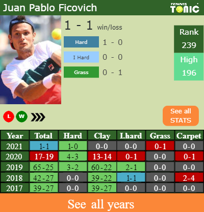 The Argentine has a composed 1-1 win-loss record in 2021, 1-0 on hard (See FULL STATS).