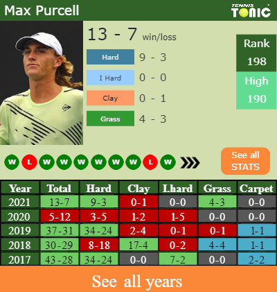 Max has an aggregate 13-7 win-loss record in 2021, 9-3 on hard (See FULL STATS).
