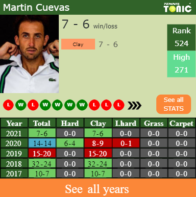 Martin has an aggregate 7-6 win-loss record in 2021, 7-6 on clay (See FULL STATS).