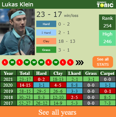 As per the initial odds, Lukas Klein is the pick to win this match.