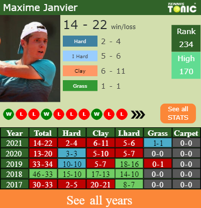 Janvier’s best result of the current year was getting to the semifinal in the Lille Challenger.