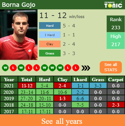 In terms of his career, Gojo has an overall 134-94 record. He has a positive 30-28 record on clay.