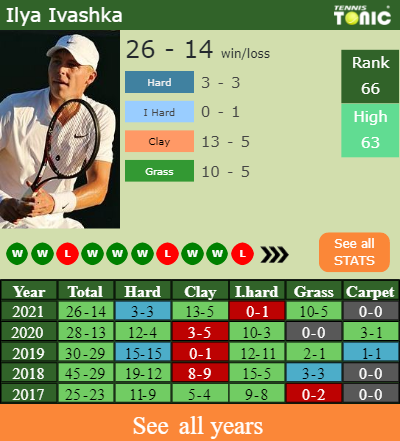 Talking about his overall career, Ivashka has an overall 306-190 record. He has a positive 167-94 record on hard.