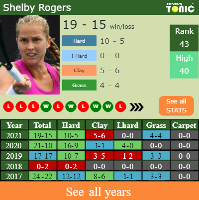 Shelby has a composed 19-15 win-loss record in 2021, 10-5 on hard (See FULL STATS).