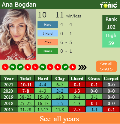 Talking about her overall career, Bogdan has an overall 335-204 record. She has a positive 130-77 record on clay.