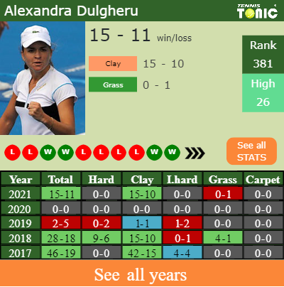 The Romanian has a compiled 15-11 win-loss record in 2021, 15-10 on clay (See FULL STATS).