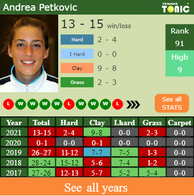Talking about her overall career, Petkovic has an overall 432-310 record. She has a positive 159-87 record on clay.