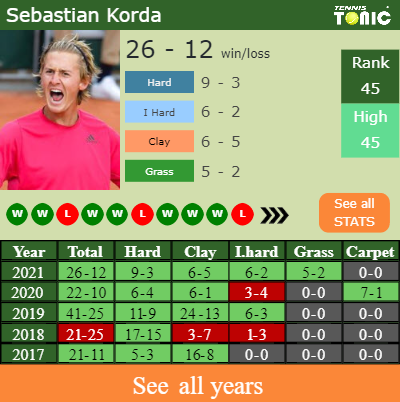 The American has an overall 26-12 win-loss record in 2021, 9-3 on hard (See FULL STATS).