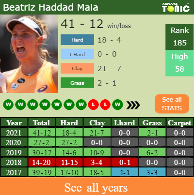 Haddad Maia has a compiled 41-12 win-loss record in 2021, 18-4 on hard (See FULL STATS).