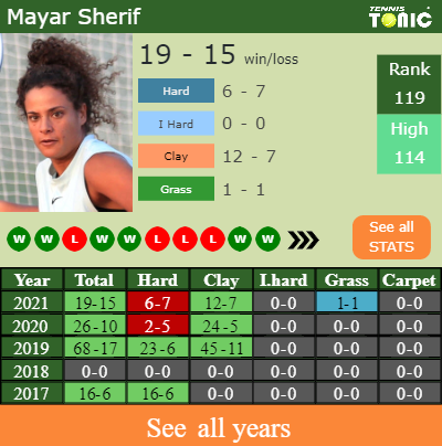 The last time that they squared off, Sherif won 6-2 6-1 in the 1st round in the W100 Charleston back in 2020.