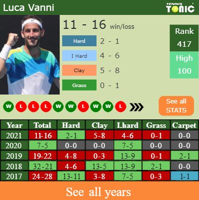 In terms of his career, Vanni has an overall 190-195 record. He has a negative 44-59 record on clay.