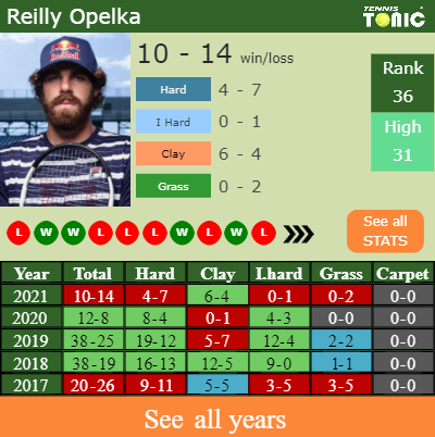 Reilly has an overall 10-14 win-loss record in 2021, 4-7 on hard (See FULL STATS).