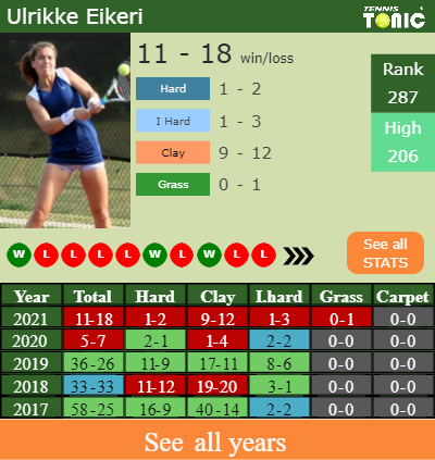 Eikeri has a composed 11-18 win-loss record in 2021, 1-2 on hard (See FULL STATS).