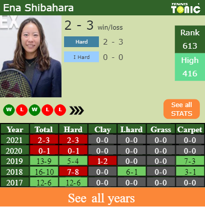 Ena has an aggregate 2-3 win-loss record in 2021, 2-3 on hard (See FULL STATS).