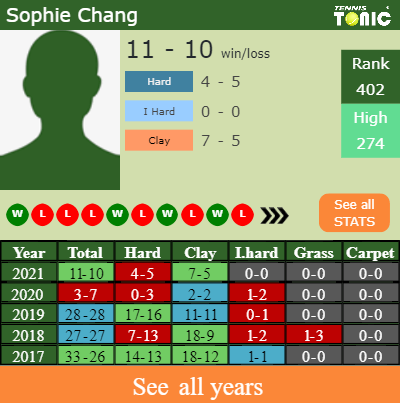 - Ena ShibaharaShibahara – Sophie ChangChang (0-0) – H2H and prediction