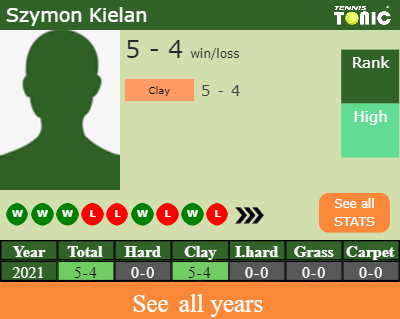 Szymon has a compiled 5-4 win-loss record in 2021, 5-4 on clay (See FULL STATS).