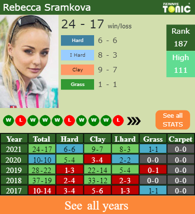 Sramkova has a composed 24-17 win-loss record in 2021, 6-6 on hard (See FULL STATS).