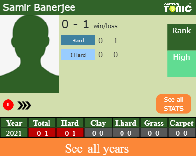 Talking about his overall career, Samir has an overall 0-1 record. He has a negative 0-1 record on hard.