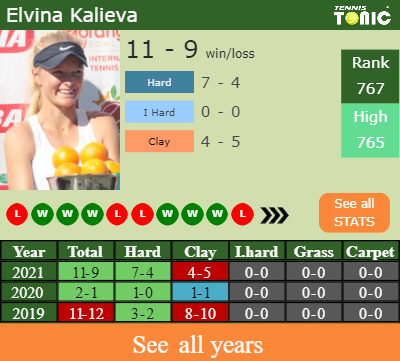 Elvina has a composed 11-9 win-loss record in 2021, 7-4 on hard (See FULL STATS).