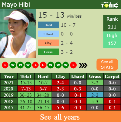 The Japanese has a compiled 15-13 win-loss record in 2021, 10-7 on hard (See FULL STATS).