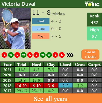 In terms of her career, Duval has an overall 144-100 record. She has a positive 84-60 record on hard.