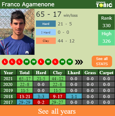 As per the initial odds, Franco Agamenone is the pick to win this match.