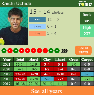 The Japanese has a compiled 16-14 win-loss record in 2021, 3-4 on clay (See FULL STATS).