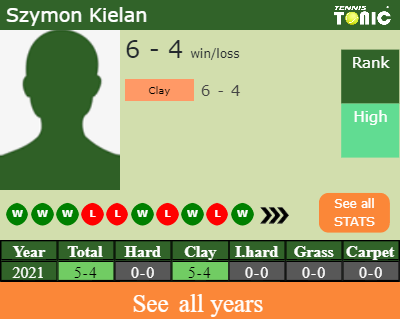 Szymon has an overall 6-4 win-loss record in 2021, 6-4 on clay (See FULL STATS).