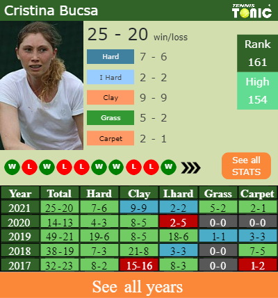 Bucsa has a compiled 25-20 win-loss record in 2021, 7-6 on hard (See FULL STATS).