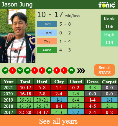The pick for Tennis Tonic is Jason Jung who should win in 5 sets.
