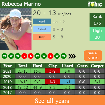 As per the initial odds, Rebecca Marino is the pick to win this match.