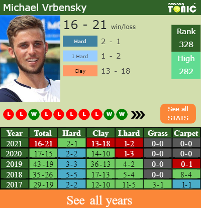 Michael has a composed 16-21 win-loss record in 2021, 13-18 on clay (See FULL STATS).