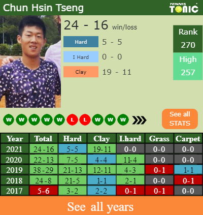 Hsin Tseng has an overall 24-16 win-loss record in 2021, 19-11 on clay (See FULL STATS).