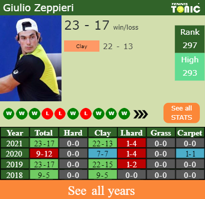 Zeppieri has a composed 23-17 win-loss record in 2021, 22-13 on clay (See FULL STATS).