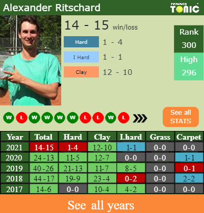 Talking about his overall career, Ritschard has an overall 212-131 record. He has a positive 124-63 record on clay.